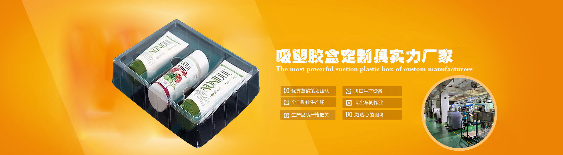 深圳市奮達康塑膠制品有限公司:成立于2006年,工廠占地面積3000余㎡,座落位于深圳市寶安區(qū)沙井街道新橋崗仔大街132號第10棟,工廠環(huán)境優(yōu)美、交通十分便利。本公司為一般納稅人企業(yè),可開具17%增值稅票;并在公司全體員工共同努力下順利通過ISO9001-2015標(biāo)準(zhǔn)質(zhì)量管理體系。 公司經(jīng)過多年來的發(fā)展壯大已經(jīng)成為一家以吸塑、膠盒兩大類包裝產(chǎn)品的綜合型生產(chǎn)廠家。以PVC、APET、PETG、PS、PP等各種環(huán)保原材料為客戶設(shè)計、制造出精美、大方、環(huán)保的吸塑產(chǎn)品及柯式印刷、絲印、燙金、燙銀膠盒等產(chǎn)品;產(chǎn)品廣泛應(yīng)用于五金、電子、日用品、醫(yī)藥、保健品、化妝品、文具、玩具、禮品、食品等各大…